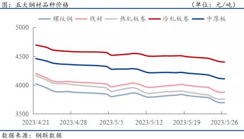 本周,全国主要市场五大品种钢材均价齐下跌。其中,螺纹钢、线材、热轧板卷、冷轧板卷、中厚板分别累计下跌125元/吨、117元/吨、119元/吨、94元/吨、100元/吨。