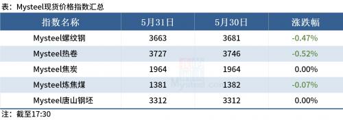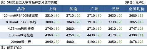 ◎5月31日,中天钢铁出台6月上旬出厂价,螺纹下调200、线材盘螺下调150,螺纹3700、线材盘螺4000。