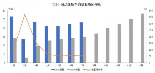 据中国汽车工业协会统计分析,2021年7月,中国品牌乘用车市场表现继续好于大市,销量环比保持小幅增长,同比增长依然明显。