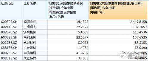 酒钢宏兴半年报显示,公司上半年实现营收262.88亿元,同比增长66.10%;实现归母净利润19.46亿元,较上年同期大幅增加20.29亿元,实现扭亏为盈。