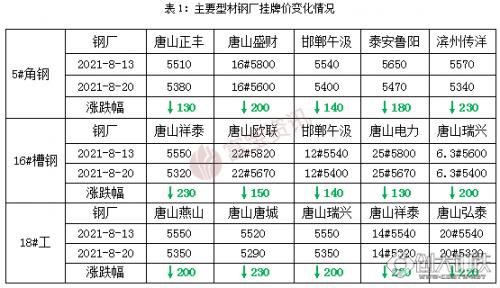 成都钢铁网资讯8月20日消息:型材周评:钢价大幅走跌市场观望情绪浓(8.16-8.20)