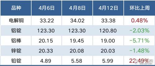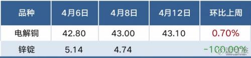 :4月12日本周一中国电解铜市场库存出现下降趋势;据网统计中国市场电解铜现货完税库存33.38万吨,较上周一增加0.16万吨;较上周四减少0.64万吨;其中上海市场19.4万吨,较上周一减少0.2万吨,较上周四减少0.65万吨;广东市场7.75万吨,较上周一增加0.37万吨,较上周四增加0.32万吨,江苏库存4.91万吨,较上周一减少0.11万吨,较上周四减少0.31万吨;其他市场较上周一维持不变。