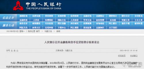 8月23日,人民银行行长、国务院金融稳定发展委员会办公室主任易纲主持召开金融机构货币信贷形势分析座谈会,研究当前货币信贷形势,部署下一步货币信贷工作。