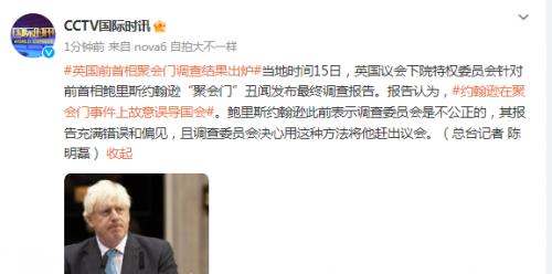当地时间15日,英国议会下院特权委员会针对前首相鲍里斯约翰逊“聚会门”丑闻发布最终调查报告。报告认为,约翰逊在聚会门事件上故意误导国会。鲍里斯约翰逊此前表示调查委员会是不公正的,其报告充满错误和偏见,且调查委员会决心用这种方法将他赶出议会。(总台记者陈明磊)