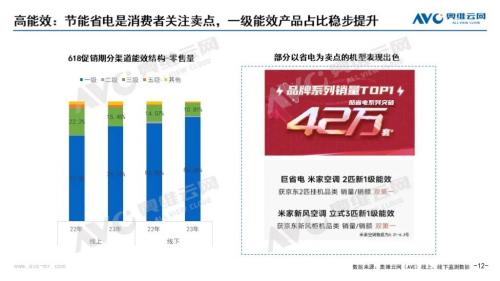 在绿色智能家电消费的政策推动和企业引导下,消费者对低碳消费的趋向程度愈加明显,新一级能效的空调产品份额确实也在呈逐年扩大趋势。而随着高温天气到来,空调使用时间延长,消费者对“节能省电”产品的关注度增加,从部分品牌发布的“618”的战报来看,省电节能产品表现耀眼。
