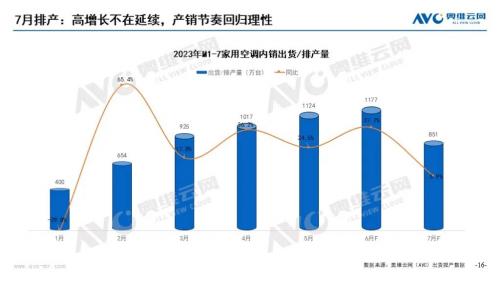 奥维云网最新监测数据显示,7月份空调企业排产量为1236万台,同比增长2.2%。其中出口排产385万台,同比增长0.6%,内销排产851万台,同比增长5.9%。整体看内销增速虽然较6月有所回调,但依然保持向上增长的态势。基于今年旺季高温的延续、去年低基数运行以及空调产品潜在需求空间,对于2023年下半年的空调市场,我们依然持乐观态度。