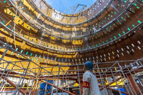 日前,由上海宝冶集团有限公司承建的马钢A高炉大修项目,在安全管理工作上牢固树立安全红线意识,认真落实安全管理各项措施,严守安全底线,为施工生产保驾护航,推动各项活动取得实效,确保施工有序平稳进行。图为职工在炉壳焊接时,现场人员进行安全监护。(汤飞/文王汉强/摄)