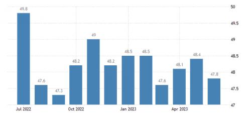 根据标普全球发布的韩国制造业采购经理人指数(PMI),韩国6月制造业PMI从5月份的48.4进一步降至了47.8,创下了3个月来的最低水平。