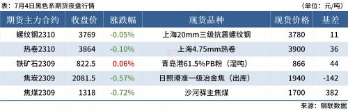 ◎ 7月4日,全国主港铁矿石成交129.00万吨,环比减7.2%;237家主流贸易商建材成交14.50万吨,环比减20.4%。