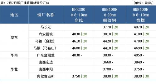 ◎7月7日,全国主港铁矿石成交86.50万吨,环比减13.8%;237家主流贸易商建筑钢材成交13.08万吨,环比减7%。