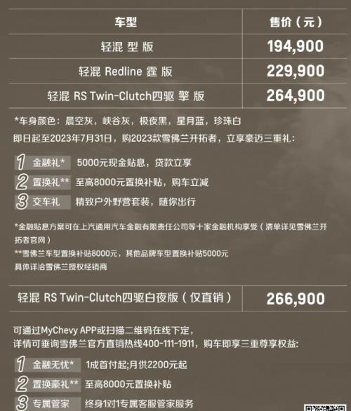 7月10日,上汽通用汽车公众号发布消息,美式7座大型SUV 2023款雪佛兰开拓者上市,共推出4款车型,售价19.49万元至26.69万元。