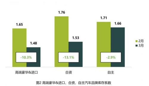 受到1-2月节前购车潮影响,豪华、合资和自主品牌实现连续两个月销量增长,经销商库存压力持续下降。