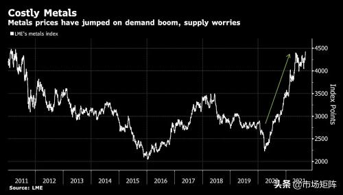 从铝到钢的材料重新上涨,欧洲天然气和电力价格创下新纪录。衡量现货商品价格的一项指标跃升至2011年5月以来的最高水平。这将加剧通胀,遏制消费支出,并给央行施加压力,以削减大部分原材料上涨背后的大规模刺激措施。