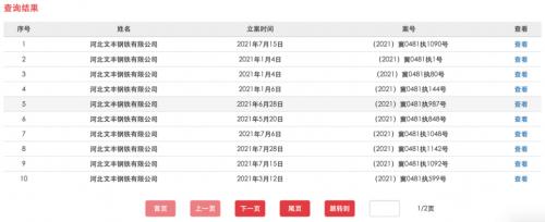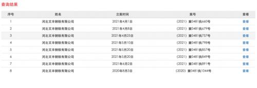 查询中国执行信息公开网,记者发现立案时间在7月份的强制执行案件多达4条,查询结果涉及文丰钢铁的强制执行案件共计18条,除1条为2020年8月份的案件外,其余17条立案时间均发生在2021年。