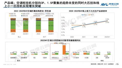 产品端:空调柜挂机分别向3P、1.5P聚集的趋势未变的同时大匹挂和线上小一匹挂机实现增长突破。