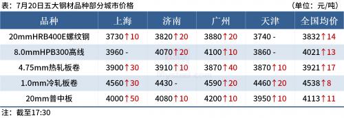 ◎7月20日唐山迁安普方坯资源出厂含税上调20,报3570元/吨。