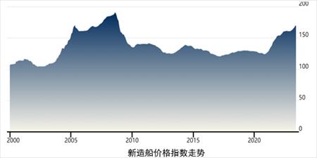 新造船价格创2009年以来新高。以克拉克森的船价为例,6月新造船价格指数收报170.9点,实现连续5个月增长,较年初增长5.6%。VLGC、大型/超大型箱船、成品油船、PCTC等一批市场热门的船型船价明显上涨的同时,也在带动整体市场继续增长。当前的新造船价格变化很大程度上反映了市场的供求关系,说明市场的需求依然可观,未来在航运减排加速的背景下,也有继续维持高位的基础。
