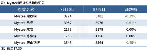 ◎8月10日,全国250家长、短流程代表钢厂废钢库存总量441.08万吨,较昨日增加2.21万吨,增长0.50%;库存周转天9.5天,较昨日减少0.1天;日消耗总量45.81万吨,较昨日降低1.02%;日到货总量48.02万吨,较昨日增长0.51%。