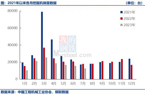 据中国工程机械工业协会公布的数据,7月销售各类挖掘机12606台,同比下降29.7%。1-7月,共销售挖掘机121424台,同比下降24.6%。我国挖掘机单月销量已连续八个月同比下滑。