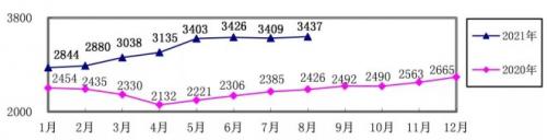 废钢8月份加权平均采购成本为3436.92元/吨,环比升高27.52元/吨,升幅为0.81%。1-8月累计平均采购成本为3213.41元/吨,同比升高883.87元/吨,升幅为37.94%。