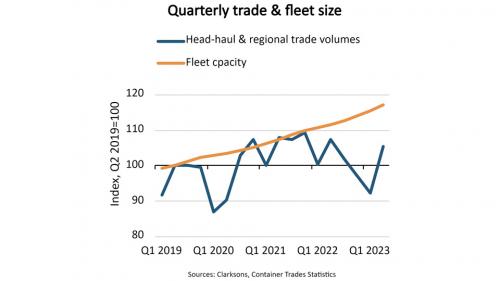 克拉克森的数据显示,集装箱船租船市场与去年的最高点相比仍大幅下滑,但在第二季度,由于集运公司在传统旺季来临前对船舶的需求强劲,加上运力供应有限,租船市场出现了一定的恢复力,甚至出现了一些涨幅。然而随着船队增长速度加快和更多船舶重新交付,市场再次出现颓势,并预计将持续到第三季度。