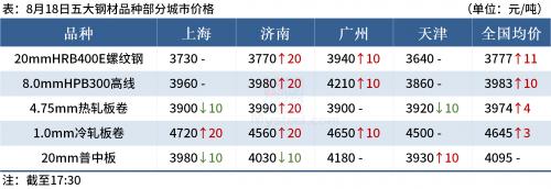 ◎8月18日,Mysteel统计40家独立电弧炉建筑钢材钢厂平均成本为3893元/吨,日环比增加11元/吨。平均利润为-156元/吨,谷电利润为-57元/吨,日环比下降3元/吨。