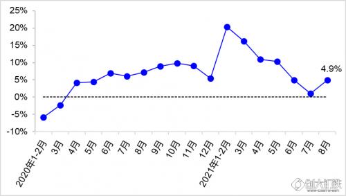 8月,完成营业性货运量45.3亿吨,同比增长5.2%、增速较7月放缓2.6个百分点,两年平均增长5.0%。其中,完成公路货运量34.4亿吨,同比增长5.8%;完成水路货运量7.0亿吨,同比增长3.6%。