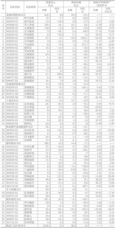 2022年,重点监测的上市公司营业收入整体上保持增长,好于行业整体。重点监测上市公司营业收入同比增长6.4%,行业企业(重点联系企业数据)的整体营业收入同比基本持平。按营业收入增长率排前三位的分行业是:磨料磨具增长13.3%,金属成形机床增长12.0%,数控装置增长10.3%。新能源汽车和动力锂电池等领域的高速发展,以及光伏和半导体等领域的需求增长,是部分上市公司增长的主要动力。