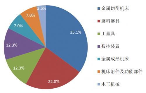 57家重点监测的上市公司中,金属切削机床行业20家,占35.1%,居于首位;磨料磨具行业13家,占22.8%,位居第二;工量具和数控装置行业均为7家,各占12.3%;金属成形机床和机床附件及功能部件行业均为4家,各占7.0%;木工机械行业2家,占3.5%。具体行业分布情况如图2所示。