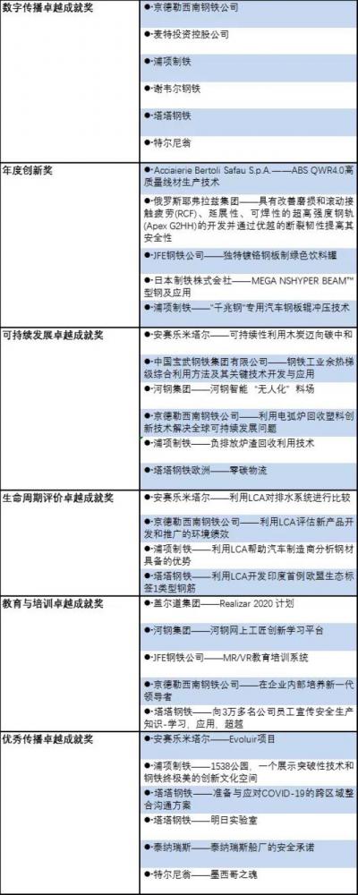 浦项制铁入围5个奖项提名。其中,浦项制铁的“千兆钢”专用汽车钢板辊冲压技术获得年度创新奖提名,负排放炉渣回收利用技术获得可持续发展卓越成就奖。