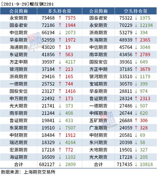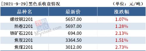 截至9月29日收盘,螺纹钢2201收5657元/吨,涨1.07%;热卷2201收5697元/吨,涨1.28%;铁矿石2201收694元/吨,涨2.13%。