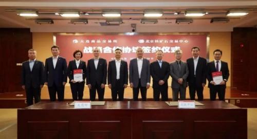 9月28日,大商所与北京铁矿石交易中心股份有限公司(下称“北铁中心”)在大连签署战略合作协议及共建铁矿石非标仓单业务合作协议。钢协党委书记、执行会长何文波,党委常委、副会长骆铁军;大商所党委书记、理事长冉华,党委副书记、总经理席志勇;钢协总经济师兼北铁中心董事长王颖生;北京市石景山区金融办副主任薛舒栋等出席签约仪式并共同见证签约。大商所副总经理王玉飞、北铁中心总裁游松分别代表双方在协议上签字。大商所党委委员、副总经理程伟东主持签约仪式。