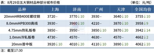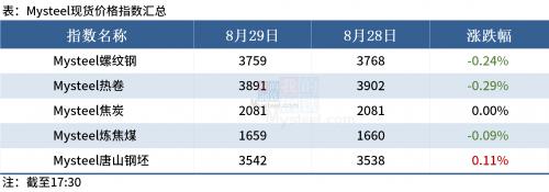 ◎8月29日,唐山迁安普方坯资源出厂含税稳,报3510元/吨。