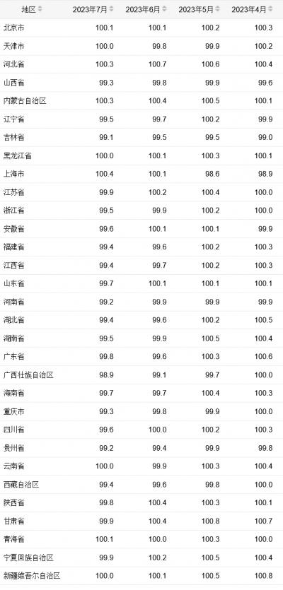 31省份7月居民消费价格指数(CPI)全部公布。7月,22省份CPI同比下降。其中,山西、吉林、河南、贵州4省份物价连续四个月回落。