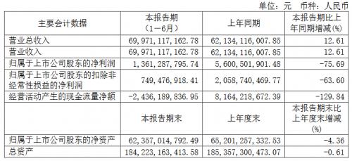8月30日,长城汽车披露半年报,营业总收入699.71亿元,同比增长12.61%,归属于上市公司股东的净利润13.61亿元,同比下降75.69%。