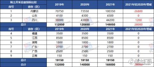 2021年9月30日,自然资源部下达2021年度稀土矿开采总量控制指标的通知,具体内容如下:
