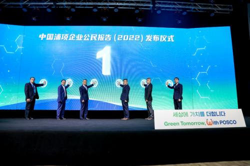 嘉宾致辞结束后,《中国浦项企业公民报告2022》发布仪式正式启动,各与会领导与嘉宾共同见证了这一刻。