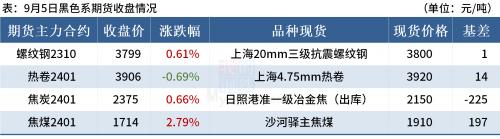 ◎ 9月5日,上期所决定,自2023年9月7日交易(即9月6日晚夜盘)起:螺纹钢期货RB2401合约交易手续费调整为成交金额的万分之一,日内平今仓交易手续费调整为成交金额的万分之一。