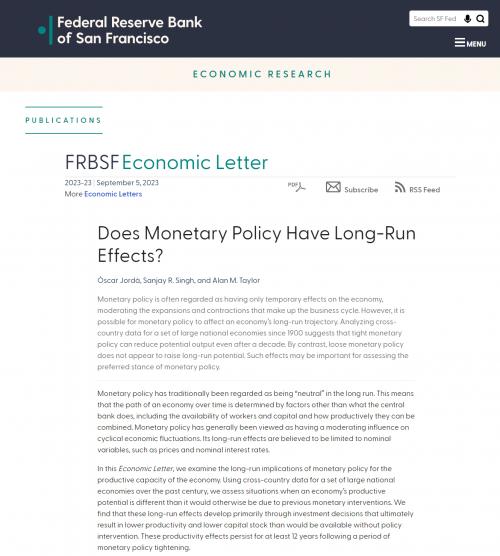 旧金山联邦储备银行(Federal Reserve bank of San Francisco)的最新研究发现,央行加息至少会在12年内减少潜在的经济产出,这与传统的国民经济理论相反,后者假定政策在长期内保持中性。