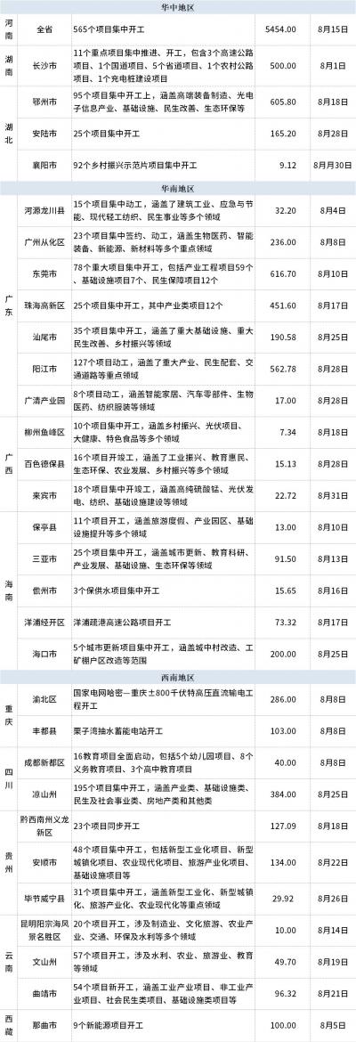 具体来看,8月15日,河南举行第九期“三个一批”项目建设活动,其中开工项目565个,总投资约5454亿元;8月23日,山东举行2023年秋季全省高质量发展重大项目建设现场推进会,797个重大项目集中开工,总投资达7054.3亿元,年度计划完成投资1584.9亿元。