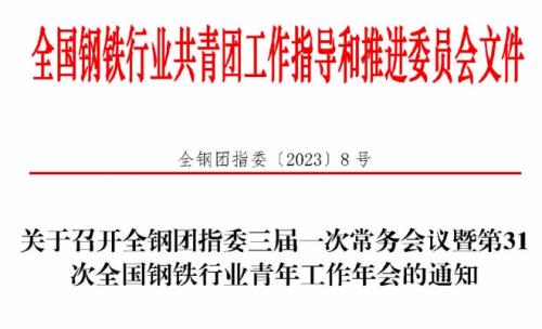 经全国钢铁行业共青团工作指导和推进委员会(以下简称“全钢团指委”)研究,并报请共青团中央和中国钢铁工业协会同意,全钢团指委三届一次常务会议暨第31次全国钢铁行业青年工作年会(以下简称“会议”)定于10月在酒泉钢铁(集团)有限责任公司召开。现将有关事宜通知如下: