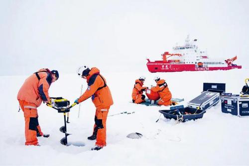 党的十八大以来,我国在创新型国家建设方面硕果累累、成效显著,创新在全社会蔚然成风。图为2023年9月5日,中国第13次北冰洋科学考察队在北极点附近的冰站调查作业。新华社记者魏弘毅/摄