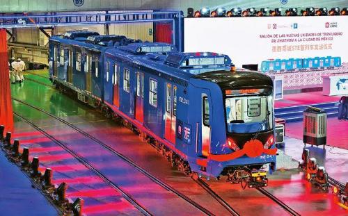 2023年9月9日,中国中车为墨西哥首都墨西哥城定制的铰接式轻轨列车首列车在中车株洲电力机车有限公司下线。为满足墨西哥城城区蜿蜒曲折的线路条件和大客流出行需求,该项目采用具有完全知识产权的铰接式转向架的轻轨列车,列车具有编组灵活、安全舒适等特点。新华社记者陈泽国/摄