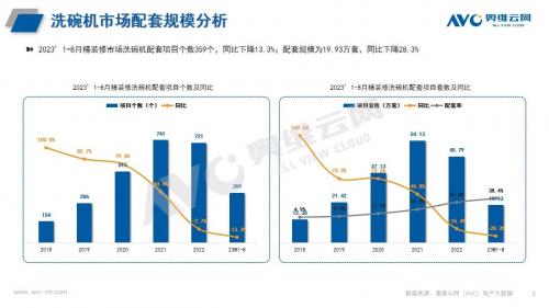 从单个部品来看,根据奥维云网(AVC)地产大数据显示,2023年1-8月精装配套项目中,烟灶配套项目中主要以老板、方太为两大主力品牌阵营,西门子、博世与去年同期相比,分别上升4.5、3.6个百分比;洗碗机配套项目中,西门子增长明显,上升为TOP2品牌,增长4.7个百分比。