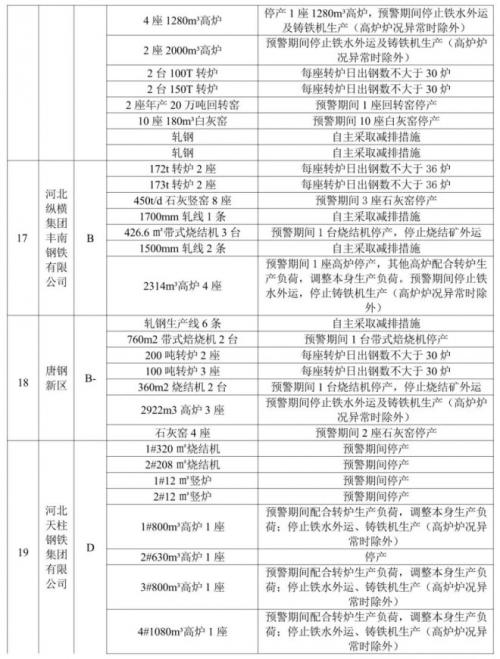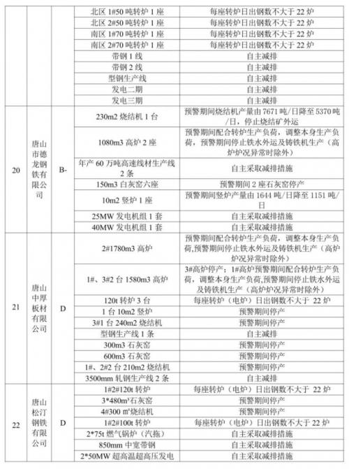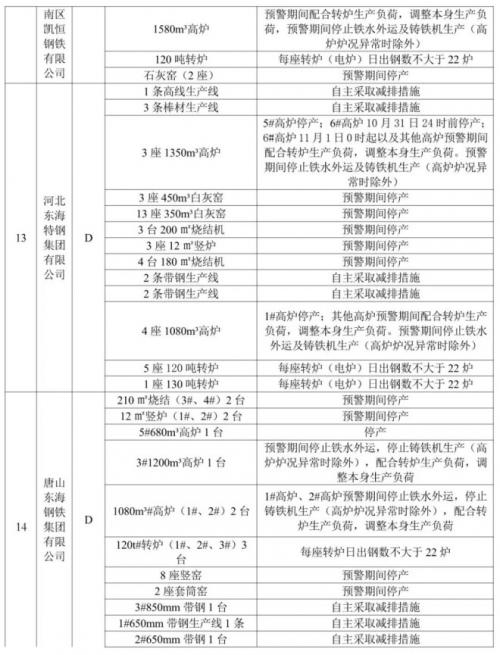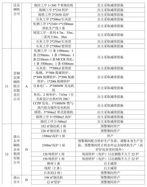 通知中提到,预警期间,唐山市将对钢铁企业生产采取以下调控措施: