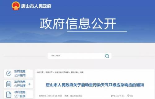 近日,唐山市人民政府发布了关于启动重污染天气Ⅱ级应急响应的通知。