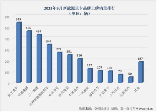 2023年1-9月新能源重卡品牌销量表(单位:辆)