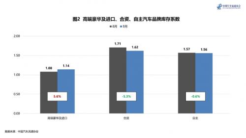 高端豪华及进口品牌库存系数上升,合资、自主品牌库存系数下降