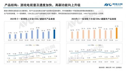 (四)功能升级:游戏电视作为中国彩电行业重要的细分场景之一,十一促销期间的普及速度进一步加快,尤其是线下市场销量占比达到41.9%。同时游戏电视的高刷功能也在向着更高阶层迈进,线上、线下渠道的144Hz产品已经形成规模。