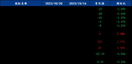 截止2023年10月20日,各原材料当日即时价格以及价格周环比情况如下: